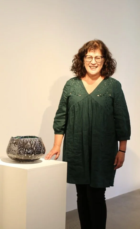 My work is known for texture and patterns I put on the clay, and the vibrant glazes that I make myself.